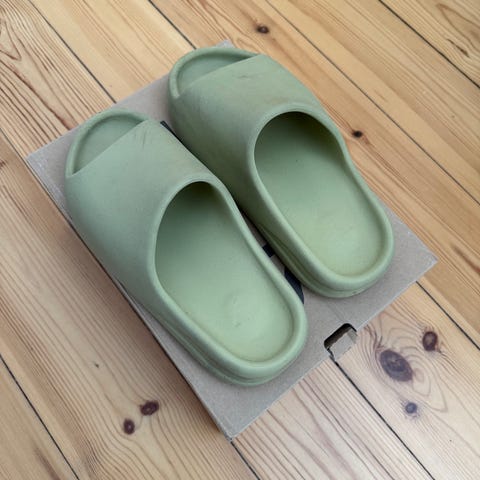 Adidas Yeezy Slide sandaler i størrelse 39. Farve: sort. Åben tå og åben hæl med bred rem over foden. Letvægtsmodel i skummateriale med profileret ydersål for bedre greb. Egnet som fritids- og hverdagssandal både inde og ude.