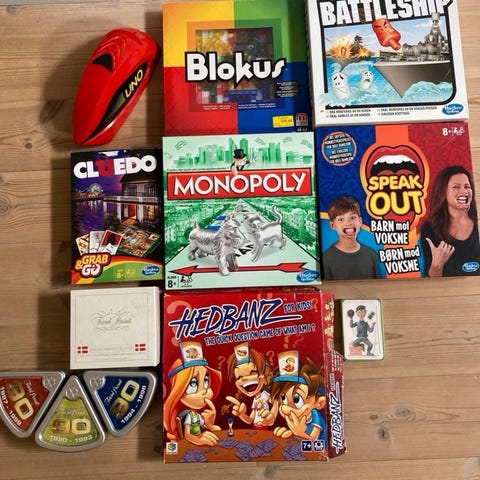 Følgende familiespil er sat til salg. Afhentning prioriteres.