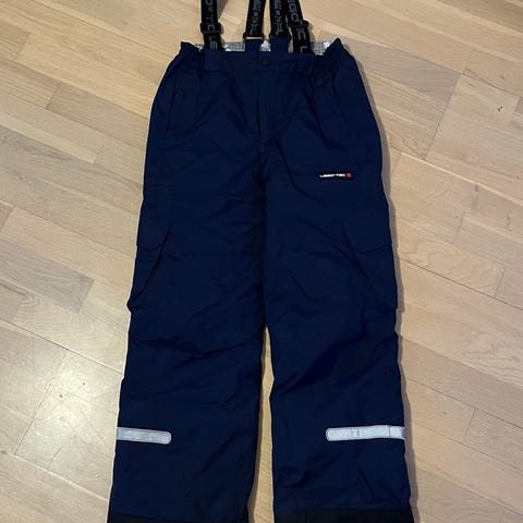 Skibukser. Stf. 134, 9 år af mærket Lego-Tec. Bukserne er lilla og har justerbare seler, elastik i taljen samt knap- og lynlåslukning. Snefang og fodstropper ved benafslutningen, der er helt intakte. Reflekser på benene for øget synlighed. Velegnet som overtøjsbukser til vinter og skibrug.