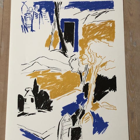 Inge Reusch 1984. Måler 52x73 cm med ramme, bladet måler 42x59 cm. Pris kr 125 afhentet Kbh Ø. Forsendelse kr 60.