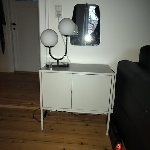 Funktionen er intakt. Dog har den Ridser i toppen både på skænken og skabet.