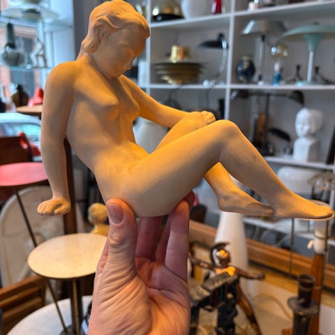 Dekorativ kvindefigur skulptur i beige ( stentøj ) 44 cm høj