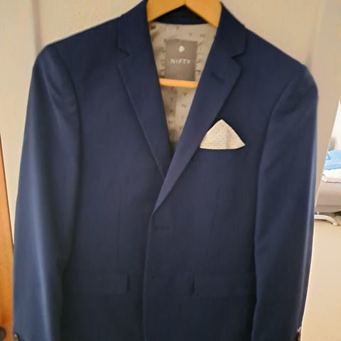 Flot blåt jakkesæt. Brugt én gang. Mærke: Nifty