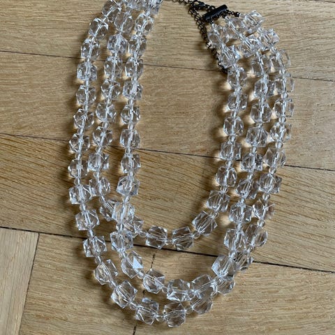 3-delt halskæde i en beige/kobber farve. Jeg er i tvivl om materialet men smuk det er den. Den korteste kæde er ca. 38 cm.