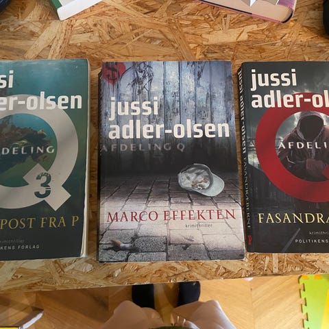 Afdeling Q 3, 4 og 5, og hun takkede guderne, Jussi Adler-Olsen, genre: krimi og spænding, 4 bøger af forfatteren Jussi Adler-Olsen.