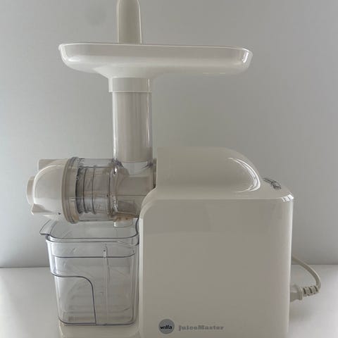 Designet med separat udløb for juice og pulp samt transparent beholder, så man nemt kan følge processen. Tænd/sluk-knap på siden og solid plastpresse i toppen.