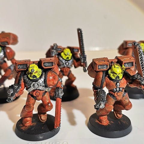 Sælger disse 7 plague marines. De er malet til fint standard og har også gået varnish.