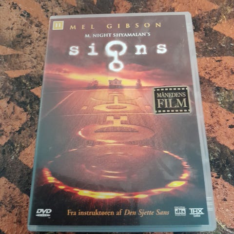 Signs DVD film. Forsiden viser filmens originale plakatmotiv. Egnet til afspilning på DVD-afspiller. Genre: thriller/science fiction.