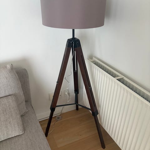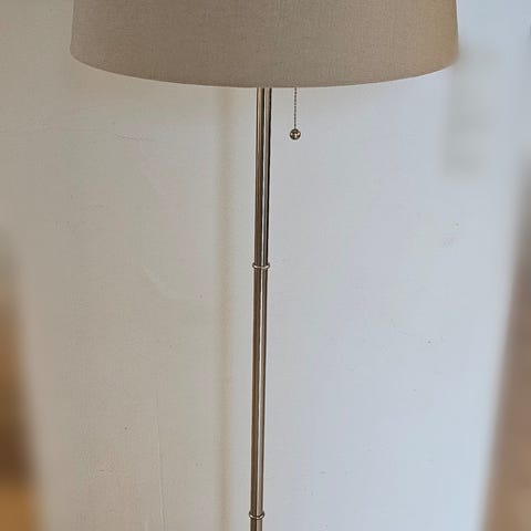 SKAFTET gulvlampefod giver lys under loftet,uden et loftudtag. Du kan skubbe lampefoden ind under en sofa for at spare gulvplads og kombinere den med en hvilken som helst lampeskærm og designe din egen personlige lampe. Lyset skinner igennem stoffet og gi'r et blødt og dekorativt lys i rummet. 4 mdr gammel, sælges grundet flytning i mindre lejlighed.