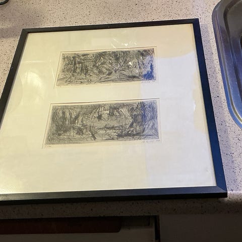 Per kirkeby. 2 stk. Raderinger fra 1978. Signerede og nr. 5/10. Brede 17 cm højde 10 cm
