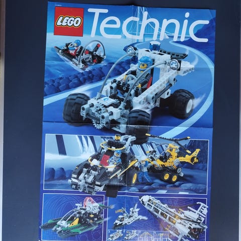 Én Lego plakat, lavet i Tyskland. Den ene side med Lego Technic og den anden side er blank . 42 x 58 cm. Plakaten er foldet.