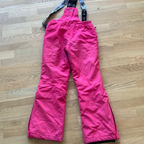 Ski- og vinterbukser i sort til børn/unge i str. 170. Bukserne har justerbare seler og lynlåslommer foran. Benene er lige med snefang nederst. Velegnet som overtøjsbukser til koldt og vådt vejr, fx til ski, vinterlege eller anden udendørs aktivitet. Brugt af en pige på nu 17år. Men har brugt dem da hun var 15 og 16. Så to gange og ellers har de hængt i skabet. Fejler intet.