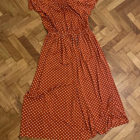 Stine Goya hverdagskjole i multifarvet print med dyr og naturmotiver. Kjolen er i viskose og har løs pasform i str. M. Den har lidt mørke pletter bag på ryggen (se billeder) men de kan kun ses tæt på