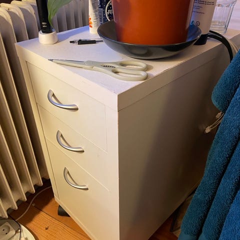 Fint gammelt skuffedarium gives væk grundet snarlig flytning. Har stået på arkitekt tegnestue i Helsingør og rummet tegninger og planer. Skal fjernes snarest og senest d. 21-22 febr.