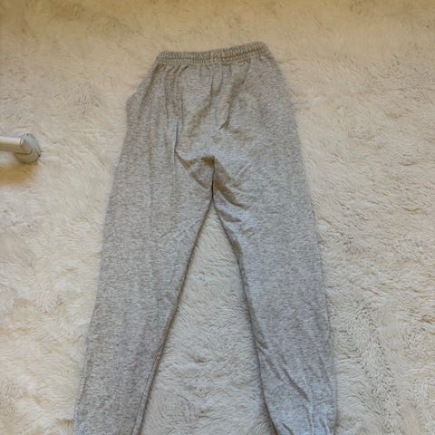 Grå joggingbukser med sidelommer. 80 % bomuld, 20 % polyester.