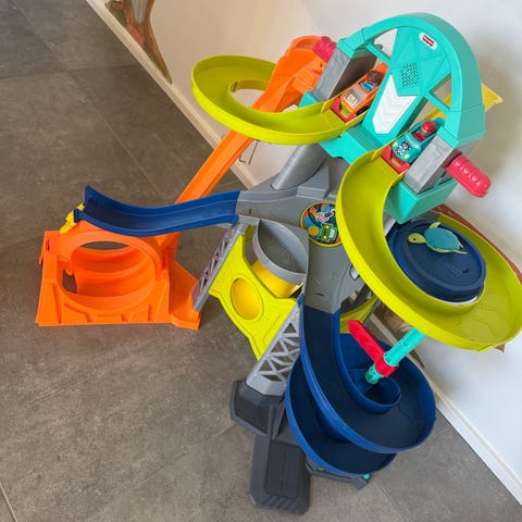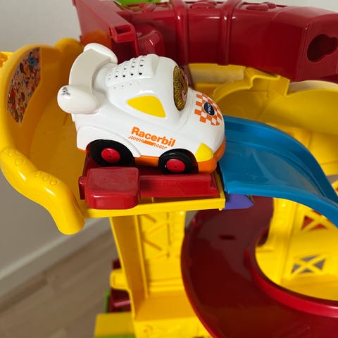 Fisher-Price bilbane 2 i 1, med to biler, i rigtig fin stand.