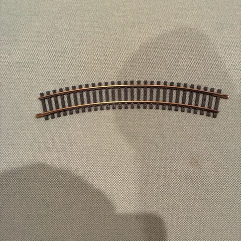 Modeltog spor med krydsningsskinne i brun plast. Egnet til modeljernbaneanlæg som forbindelsesstykke mellem to spor.