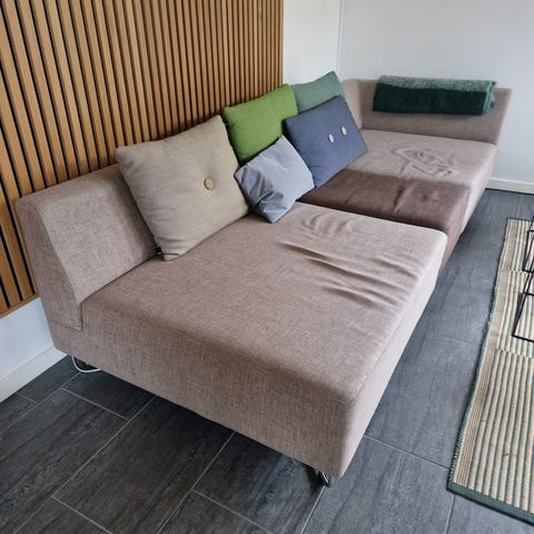 Bolia Orlando sofa med to moduler, som kan vendes efter behov, alt efter hvilken side man ønsker armlænet til.