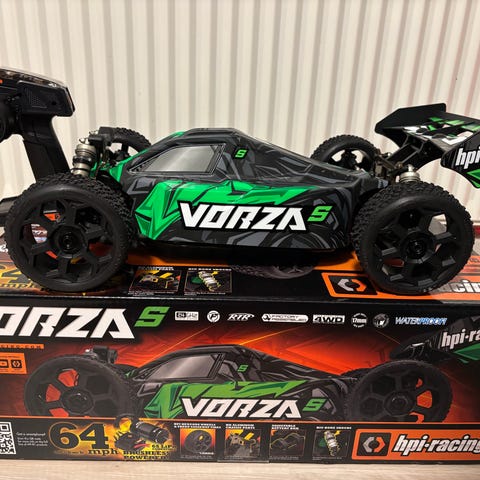 har kun kørt lidt i stuen. den er helt komplet med alt der følger med fra ny aldrig samlet færdig eller malet. kassen det kommer i er i god stand. der følger en futuba sender og modtager med. Alt virker Kan sendes