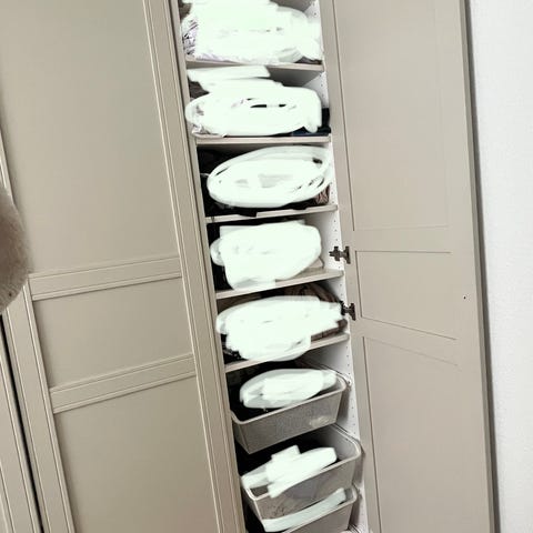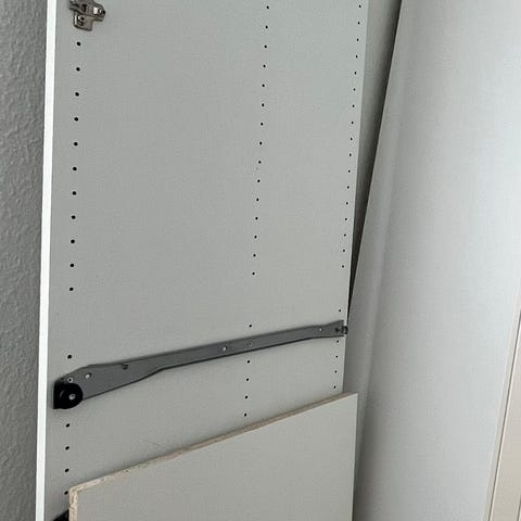 Som på billedet med udtræk og hylder. Fin stand. Står adskilt. Har kun været samlet en gang.