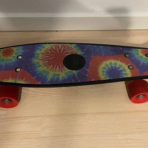 Pennyboard skateboard med struktur på oversiden for bedre fodfæste. Brættet er fremstillet i hård plast og udstyret med sorte hjul og standard trucks. Brættet lyser op i mørke, som ses på billederne. (Dog mindre end på billedet).