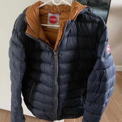 Colmar vinterjakke til herre i størrelse 52. Jakken er sort og fremstillet i polyester. Den har blød, pelslignende foring i hætte og overkrop, gennemgående lynlås med vindstolpe og trykknapper samt flere udvendige lommer. Velegnet som varm yderjakke i vinterhalvåret. Fed og lun frakke. Passer person på ca 90 kg.