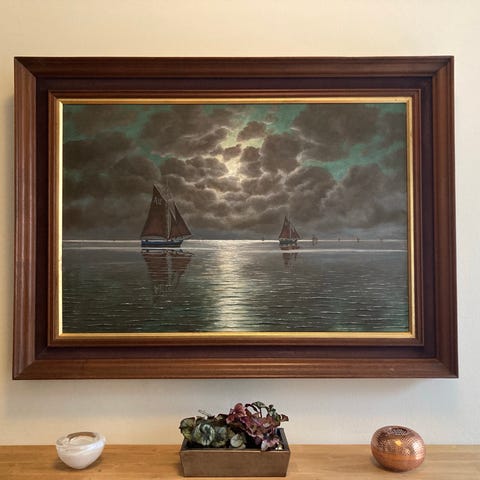 Smukt livligt maleri af Jens Sørensen i klare farver.
