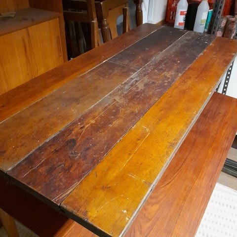 Bordet er lavet af gamle gulvbrædder fra københavner lejlighed