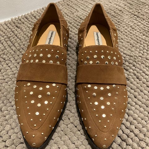 Smukke lækre helt nye loafers med perler og lille hæl i skind. Helt nye, ubrugte og fejlfri. Fra røgfrit hjem.