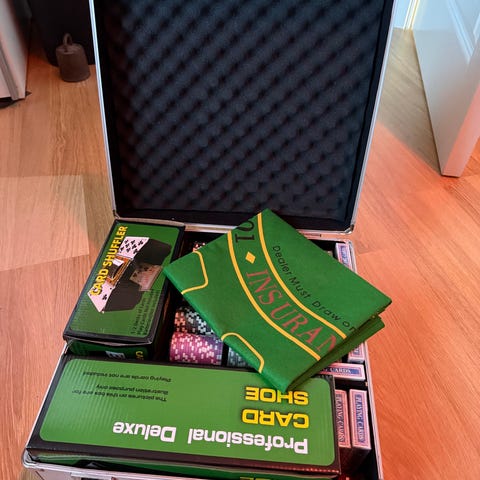 Poker sæt i aluminiumskuffert med jetoner og kort