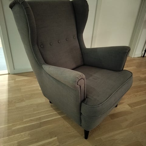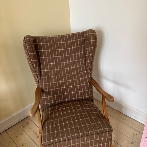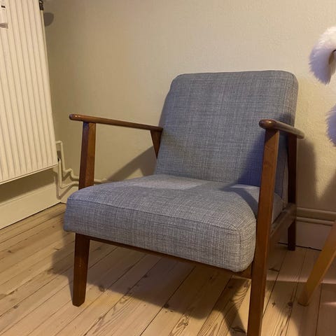 Brugt i kort tid, sæde som nyt, armlæn lidt slidt, men en yderst velholdt stol