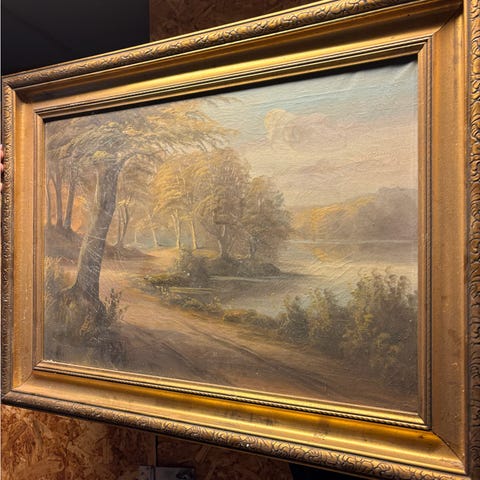 GL MALERI , SMUKT SKOV PARTI I GULDRAMME.