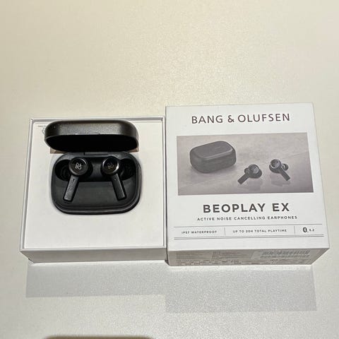 Bang & Olufsen Beoplay EX (beoplay ex active noise cancelling) trådløse in-ear høretelefoner i gold tone design med matchende opladeetui.