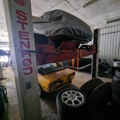 Stenhøj 4 søjlet lift , 3 ton, manuel donkraft medfølger,4 lystofrør