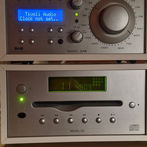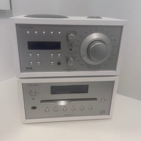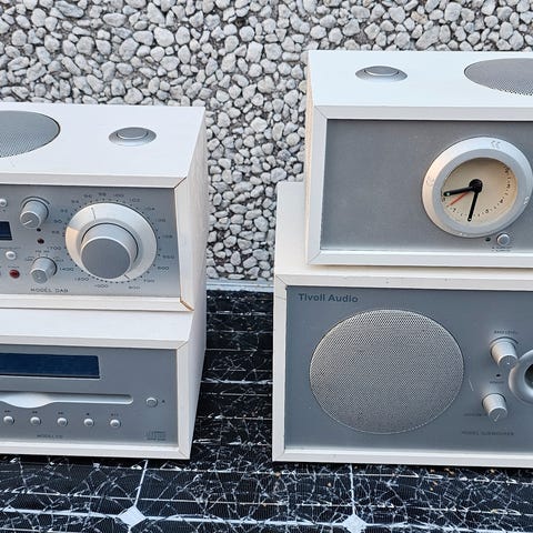 Stereo Tivoli Audio anlæg med subwoofer. Der følger en audiopro wifi dingle med, så man kan streame bl.a. spotify.