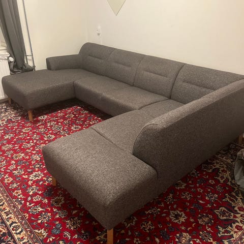 Grå/sort usofa.