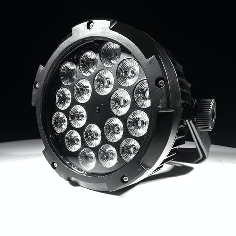 DEXI flat PAR 18x18W RGBWA+UV lyser selv den mørkeste krog på scenen op i fantastiske farver.