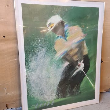 Litografi, Charles Crombie, motiv: Golf regler, b: 44 h: 39, (5) Indrammet litografi af golf regler af Charles Crombie sælges for 275,00 kr.