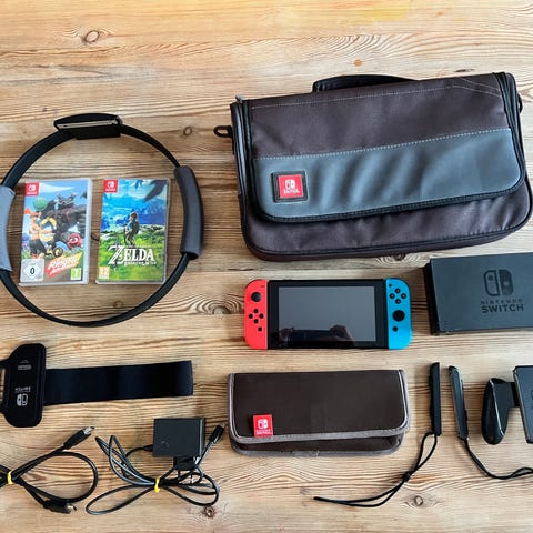 Nintendo Switch Animal Crossing Edition i pæn brugt stand. Alt fungerer som det skal og sælges som samlet pakke med ekstra tilbehør.