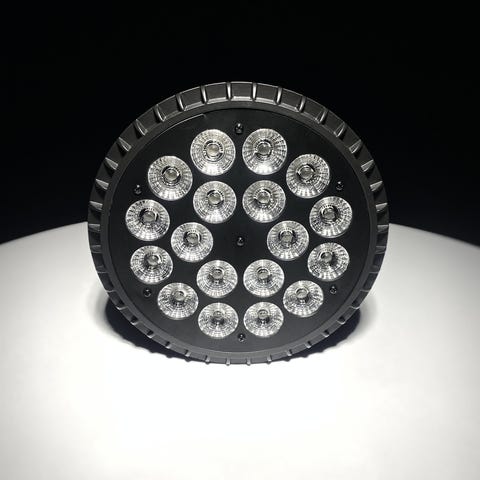 Du får imponerende 108W fordelt på seks linser, og lampen er ideel som uplight for at skabe den helt rigtige stemning.