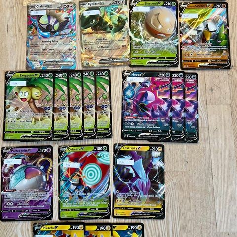 Pokémon samlekort sæt bestående af flere GX- og EX-kort samt holo- og fuldartkort. Kortene er originale Pokémon Trading Card Game kort og opbevares i plastlommer på billederne. Egnet til samling eller som udvidelse af eksisterende Pokémon TCG samling. Antal, sæt og udgaver fremgår af billederne.