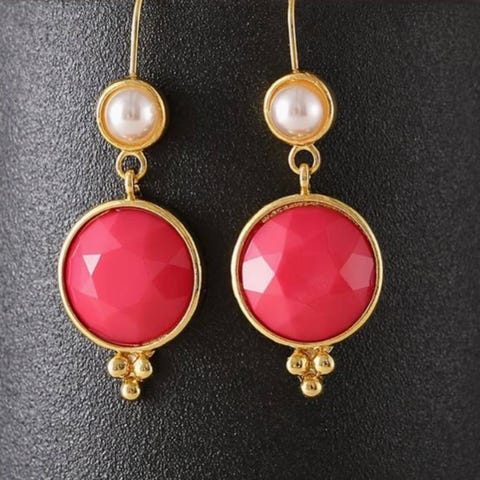 DE SMUKKESTE ØRERINGE med en mørkegrøn sten med facetter, så den skinner meget flot. Vedhænget måler 2x4 cm incl. de hvide perler. Farven passer fint på billederne. Øreringene er MEGET SMUKKE og helt nye