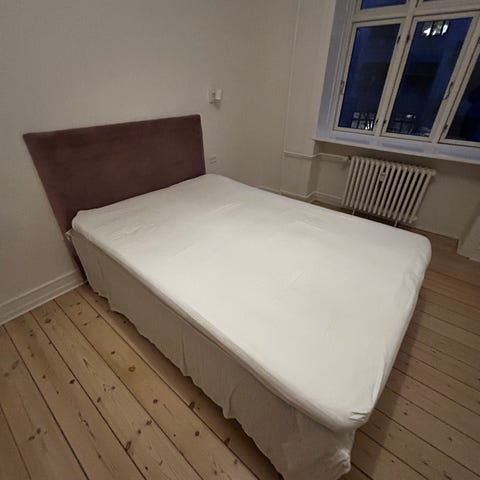 Gratis seng + topmadras til afhentning. 140 cm bred. Det ene hjørne har synlige brugsspor.