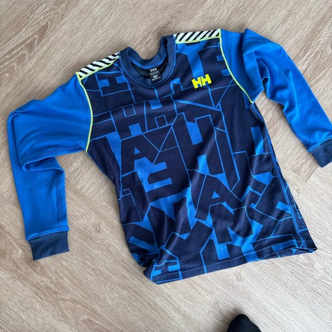 Helly Hansen HH baselayer sæt til børn i str. 98/3. Sættet består af langærmet undertrøje og lange underbukser. Farven er mørkegrå/sort med røde kanter og manchetter. Materialet er let og åndbart syntetisk stof, egnet som inderste lag under overtøj ved udendørs aktiviteter og hverdagsbrug i køligt vejr.