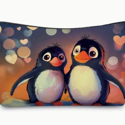 SØD KOSMETIKTASKE med et SKØNT MOTIV med en pige med paraply, der kysser månen. Kosmetiktasken er 16x23 cm og med stabil lynlås. Materialet er kraftigt lærred og den vejer bare 40 gram. Den er helt ny
