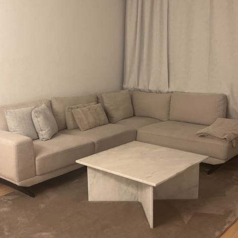 Flot og solid sofabord i lys marmorlook/sten. Bordet er tungt og stabilt med et enkelt og tidløst design, der passer godt ind i både stue og opholdsrum.
