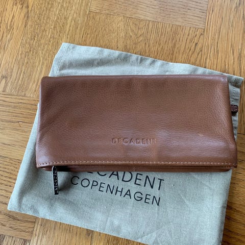 På forsiden eren praktisk udvendig lomme. Decadent logo er præget i skindet.