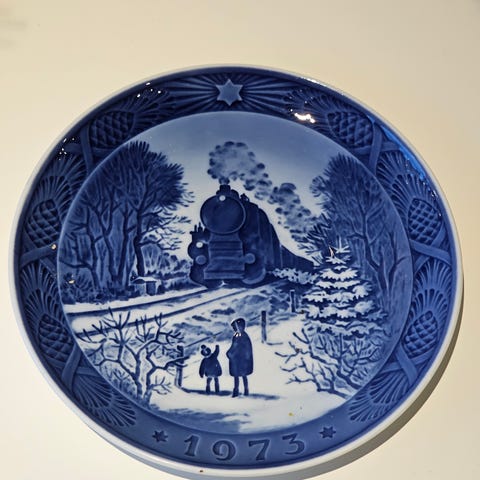 Royal Copenhagen juleplatte fra 1974 med titlen "Vinterskumring