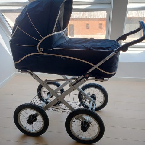 Brugt til 2 børn altid stået inde rigtigt god stand. Sælges med godkendt sele mygge net og regnslag punkterfri dæk.