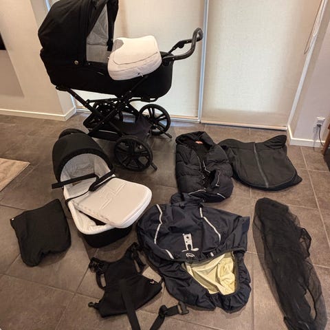 Odder zip barnevogn med tilbehør